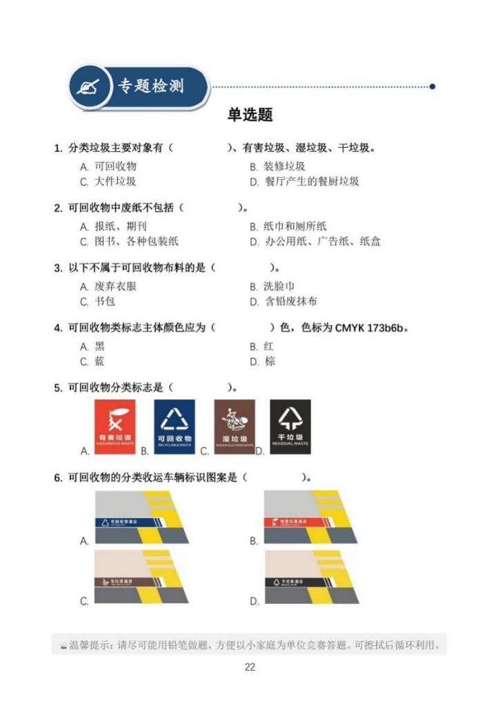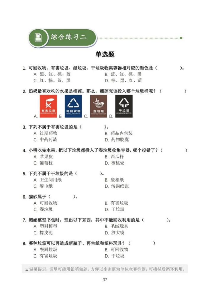上海市生活垃圾分类通识练习手册