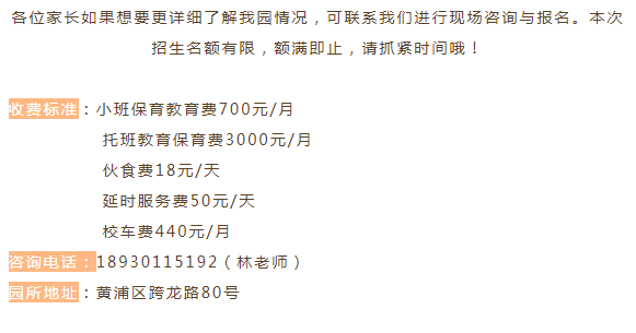 上海黄浦区民办明日星幼儿园是一所具有双语、轮滑为特色的幼儿园。融合国内外先进的教学理念,根据幼儿不同的年龄特点和发展水平出发,为幼儿营造一个多元、开放式的学习环境,让幼儿在丰富的多元的、具有探索性、启发性、游戏的环境中学会成长。在快乐中培养孩子乐观、独立、自信等良好的品质。