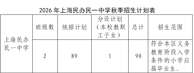 2026年秋季,学校初中部招收新生90名,全部为走读。具体情况如下: