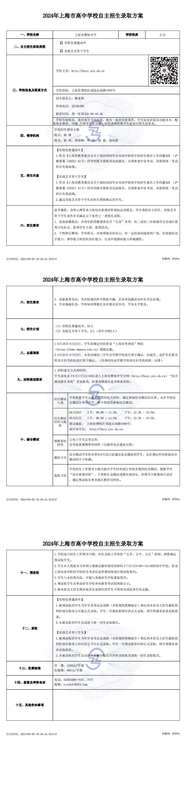 根据《上海市人民政府办公厅关于加强本市中小学体育艺术工作的指导意见》(沪府办规〔2019〕10号)、《上海市教育委员会关于印发<上海市高中阶段学校招生录取改革实施办法>的通知》(沪教委规〔2021〕2号)等要求,根据2024年本市高中阶段学校招生考试总体安排以及《上海市教育委员会 上海市体育局关于做好2024年本市高中阶段学校招收优秀体育学生工作的通知》(沪教委体〔2024〕4号)等文件精神,结合我校实际,制定2024年上海市曹杨中学招收区级优秀体育学生资格确认工作方案如下: