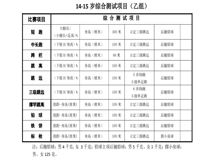 测试项目由招生学校根据自己学校田径项目建设和发展的需要,确定田径测试项目。