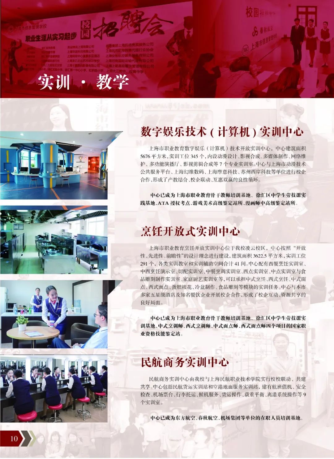 学校简介 上海市信息管理学校是徐汇区教育局主管的一所以培养现代服务业从业人员为主的大型综合性公办学校,始建于1983年,是国家级重点中等职业学校,上海市中等职业教育改革发展特色示范校。 现学校一校五址,分别为蒲汇塘校区、凌云校区、罗香校区、东安校区和新建中的南部主校区,学校实行“统一指挥,分级管理,依法规范,责权一致”的两级管理模式。学校具有中本(中高职)贯通职业教育、中等职业教育、特殊教育和成人教育四个教育种类,建设文化教育、信息技术和旅游航空三大专业群。学校始终力推三化改革(现代化、信息化、国际化),以“厚于德、精于技、达于和”为校训,以培养“雅为善学的职业人”为育人目标,不断提升人才培养质量,打造品牌教育,力争使学校成为具有上海特点、中国特色、世界影响的品牌职业学校。 学校荣誉 国家级重点中职院校 上海市中职改革发展特色示范校 上海市行为规范示范校 全国五四红旗团组织 上海市职业教育先进单位 上海市依法治校示范校 上海市文明校园 上海市心理健康教育达标校 全国校园足球特色学校 上海市安全文明校园 全国国防教育特色学校 上海市校园冰雪运动特色学校 上海市民族文化传承教育基地 上海市校园文化建设一校一品特色学校 学校特色 “智能服务”引领专业布局 学校以信息技术与人工智能产业发展为基础,以“智能服务+”为核心,凸显“创新服务、智领未来”的建设理念,积极构筑对接打造上海服务品牌和徐汇区域产业发展的三大专业群:“智能服务+文化创意”引领文化教育专业群;“智能服务+技术应用”引领信息技术专业群;“智能服务+个性定制”引领旅游航空专业群。同时与本市人工智能引领高校研发团队合作,开设人工智能通识课程,全面培养学生“智能服务”的理念。学校与公安部第三研究所深入合作,推进“网络系统管理”世界技能大赛培训基地配套设施智能化更新,服务世赛人才培养、服务学校专业建设。 “民族文化”传承历史文脉 学校作为上海市中职校民族文化传承教育基地,一贯致力于培养传承与弘扬中华文化的新时代人才。学校与上海视觉艺术学院、上海应用技术大学合作,创新推出了“2+1”模式文物保护与修复中本贯通双学位专业;依托上海图书馆、上海博物馆、南京博物院等各方资源,开设“探索求真”、“艺林和韵”、“文博乐尚”等系列民族文化传承拓展课程;聘请长三角非遗传承人,开发包括“紫砂工艺”“黄杨木雕”“藏书印刻制”“古籍装帧”“书画装裱”等多门非遗课程;利用专业优势,打造信息管理学校民族文化传承节特色品牌。近年来,学校与法国图卢兹米雷市ESM职业学院签署备忘录,输送学校具有中国文化特色的职业教育课程。 “产教融合”落实共建共育 学校把产教融合作为重点工程,紧紧围绕办学定位,从联合培养应用型人才角度出发,力求与企业深度合作、落实共建共育,切实提高人才培养质量。学校与华为科技有限公司达成合作意向,依托南部主校区智慧校园建设基础,加入“鲲鹏产业学院”元素,促进信息技术专业群的建设与发展;学校与上海世纪出版(集团)有限公司开展合作,依托张品芳大师工作室,开设“上海古籍修复工场”;学校与上海东湖(集团)公司合作“现代学徒制”试点人才培养项目,依托全国模范教师、上海工匠“陈珺工作室”、学校建设的上海市烹饪开放实训中心以及东湖集团旗下各企业建设共育培训基地。 “汇兰和乐”塑造文化体系 在近四十年的办学历程中,学校传承历史文脉、弘扬工匠精神,始终高举“以文化校,以文育人”的战略旗帜,形成了独秀一枝的“汇兰和乐”学校文化品牌体系。汇兰同心,建设和谐共进的幸福校园;汇兰育仁,培养雅为善学的未来工匠;汇兰蕴教,打造产教融合的特色专业。站在21世纪第二个十年的开端,立足于国际化大都市,上海市信息管理学校正以优雅如兰、智慧如兰、和逸如兰的姿态,实行“引进来、走出去”双向互动工作发展路径,弘扬中国优秀传统文化,建设以“智能服务+专业”为特色的高水平的职业学校,彰显中国职教影响力。